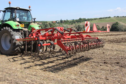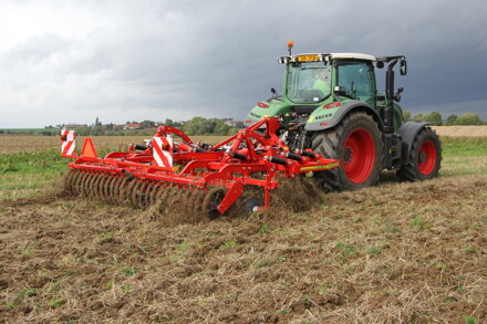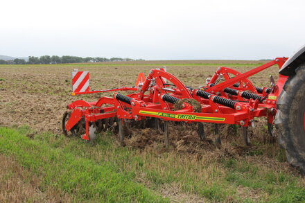 The three-row tine cultivator TRITON II is designed for a wide range of working operations from stubble cultivation to deep loosening. Variable tines allow the soil to be processed at different depths with varying intensity of soil loosening. The TRITON processes the soil in the depth range of 8 – 30 cm.